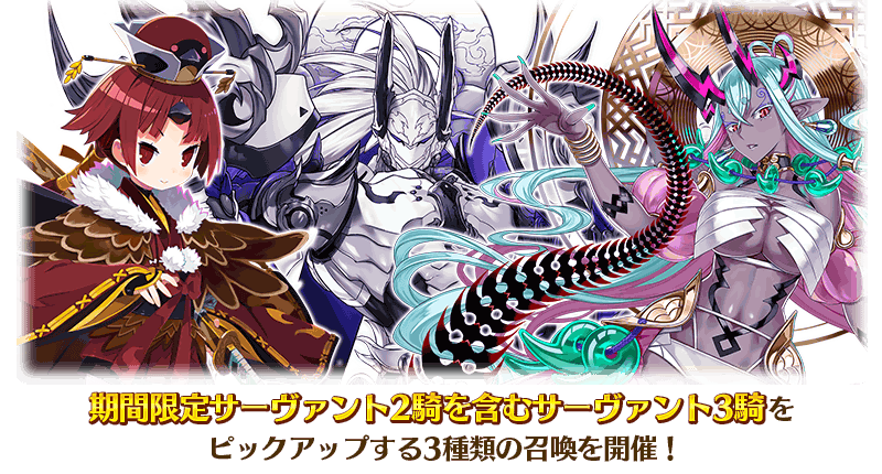 ※下記の期間限定サーヴァントは、ピックアップ対象となっている召喚からのみ排出されます。また、ピックアップ期間終了後、ストーリー召喚には追加されません。