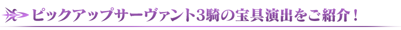 本召喚にてピックアップされているサーヴァント3騎の宝具演出を紹介いたします!