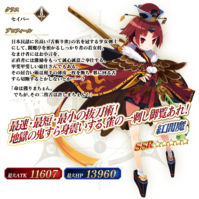 ※上記の「★5(SSR)紅閻魔」のイラストは霊基再臨第2段階のものです。