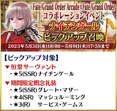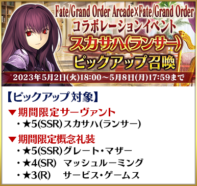 ◆「Fate/Grand Order Arcade×Fate/Grand Orderコラボレーションイベントピックアップ3召喚」期間◆