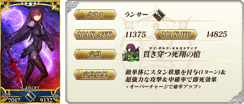 ※上記の「★5(SSR)スカサハ(ランサー)」のイラストは霊基再臨第2段階のものです。