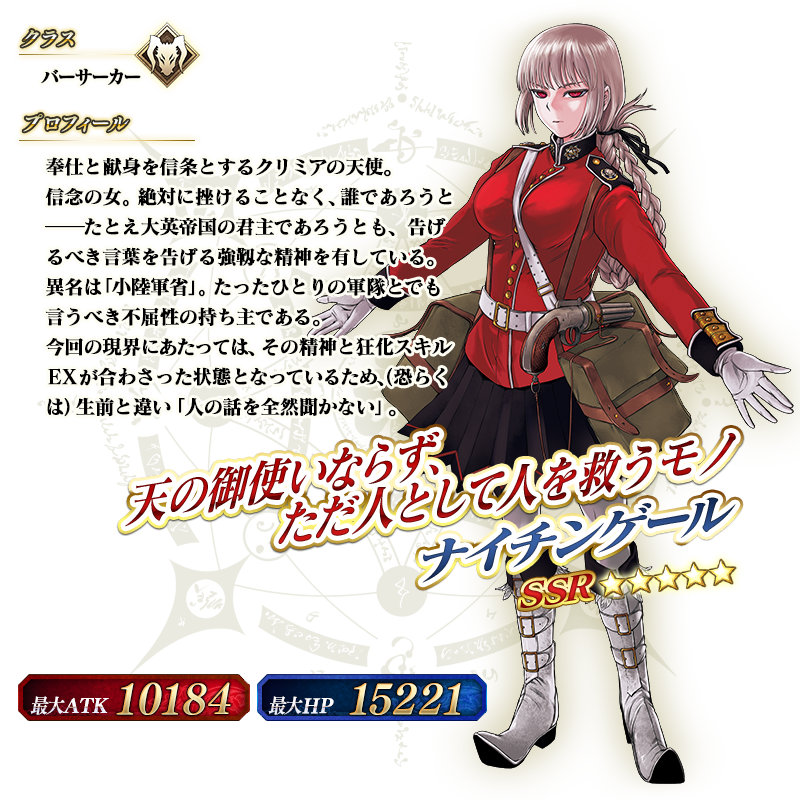 ※上記の「★5(SSR)ナイチンゲール」のイラストは霊基再臨第2段階のものです。