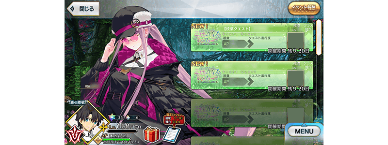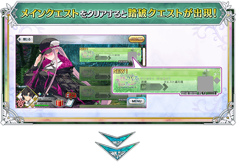 期間限定イベント「ミスティックアイズ・シンフォニー ~妖しの森と麗しの足跡~」のすべてのメインクエストをクリアしたマスターを対象として、高難易度の「チャレンジクエスト」が開放されます。