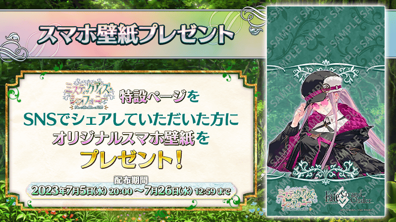 期間限定イベント「ミスティックアイズ・シンフォニー ~妖しの森と麗しの足跡~」の特設ページにて、スマートフォン向け壁紙のプレゼントを実施中!