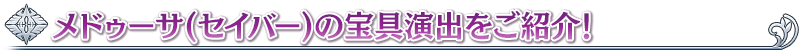 本召喚にてピックアップされている、「★5(SSR)メドゥーサ(セイバー)」の宝具演出を紹介いたします!