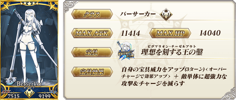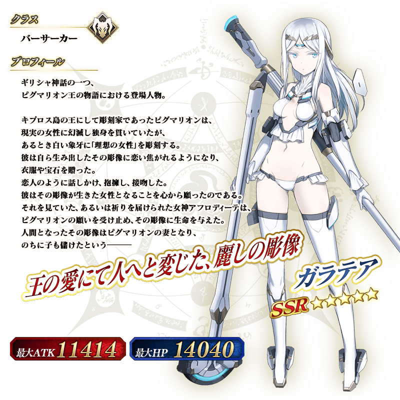 ※上記の「★5(SSR)ガラテア」のイラストは霊基再臨第2段階のものです。