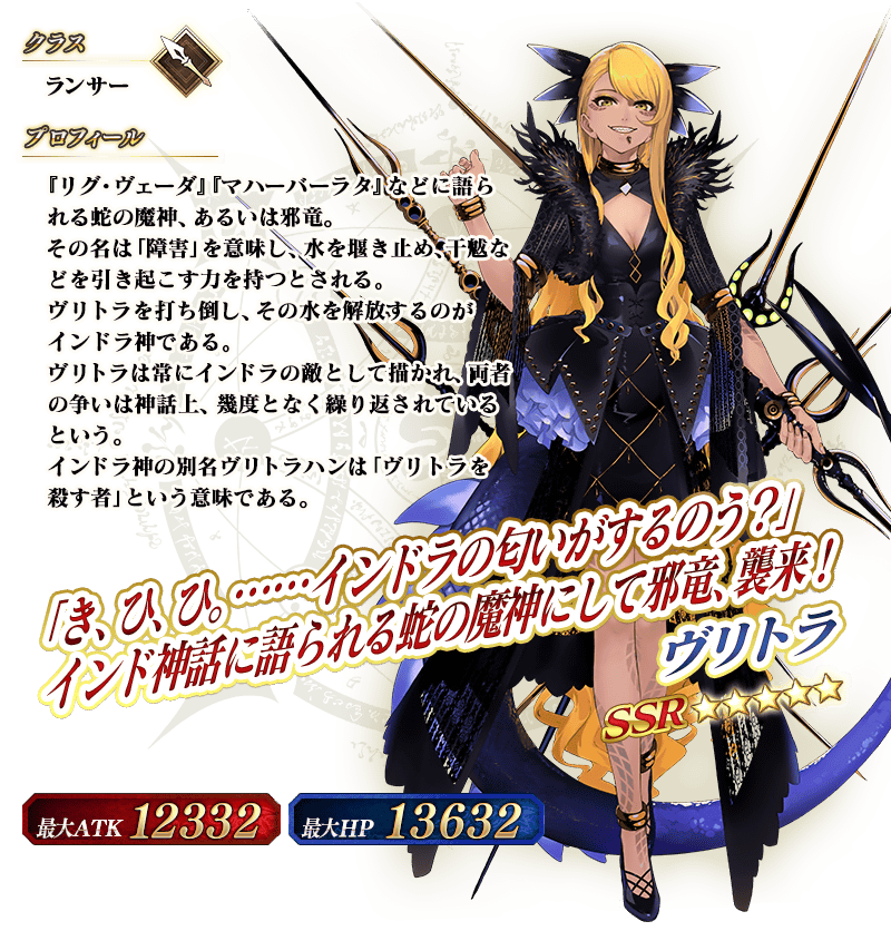 ※上記の「★5(SSR)ヴリトラ」のイラストは霊基再臨第2段階のものです。