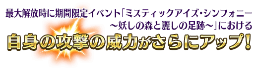 ※下記の概念礼装の期間限定イベント「ミスティックアイズ・シンフォニー ~妖しの森と麗しの足跡~」における「自身の攻撃の威力がアップ」の効果は、各レアリティ以下のサーヴァントが装備時のみ発動されます。