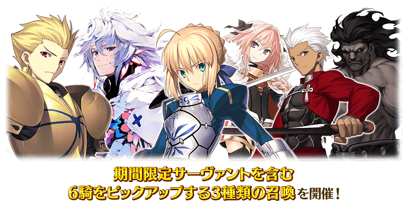 ※下記の期間限定サーヴァントは、ピックアップ対象となっている召喚からのみ排出されます。また、ピックアップ期間終了後、ストーリー召喚には追加されません。