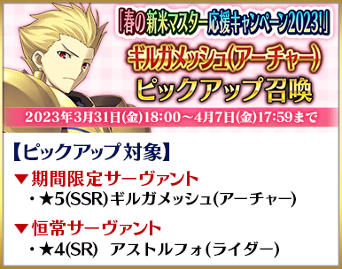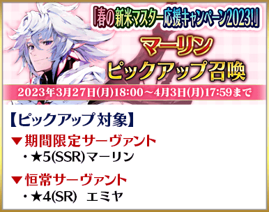 ◆『「春の新米マスター応援キャンペーン2023!」ピックアップ召喚』期間◆