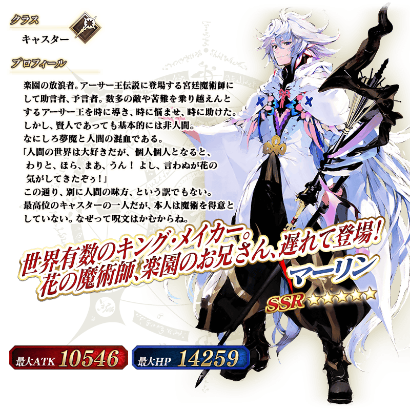 ※上記の「★5(SSR)マーリン」のイラストは霊基再臨第2段階のものです。