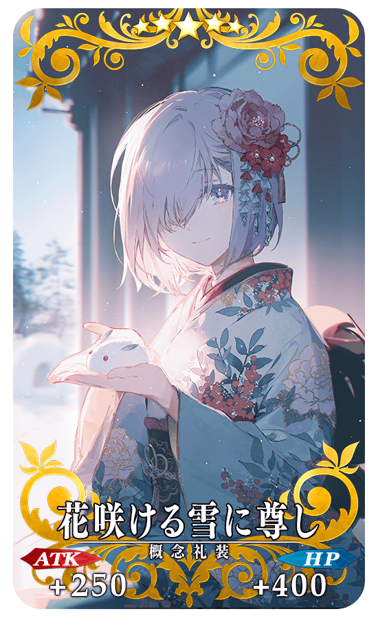 11回召喚では★4(SR)以上1枚確定と★3(R)以上のサーヴァント1騎確定! ※★4(SR)以上確定にはサーヴァントと概念礼装が含まれます。 ※本ページの画像はすべて開発中のものです。実際の画像とは異なる場合があります。