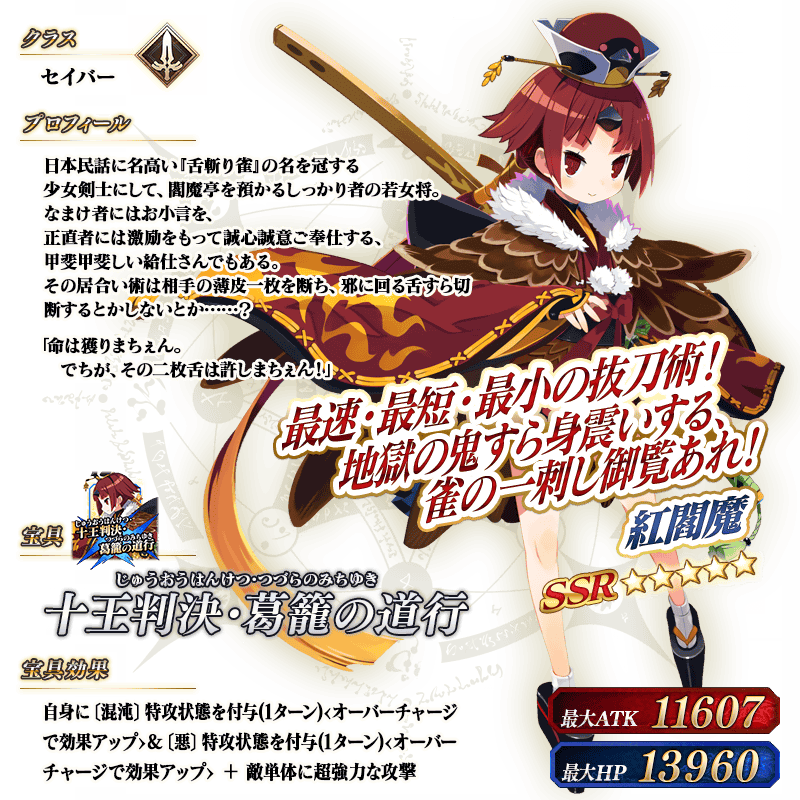 ※上記の「★5(SSR)紅閻魔」のイラストは霊基再臨第2段階のものです。