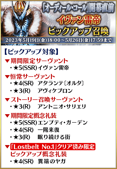 ◆『「オーディール・コール」開幕直前ピックアップ召喚』期間◆