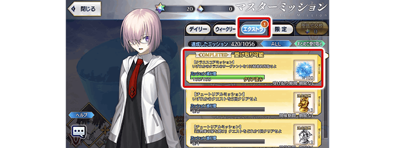 ※既にミッションの条件を満たしている場合でも、同様にクリア報酬を受け取ることができます。
