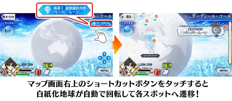 白紙化地球のマップ画面に、特定のスポットへ遷移するショートカットボタンを追加いたしました!