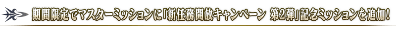 下記の期間中、マスターミッション(限定ミッション)に、「新任務開放キャンペーン 第2弾」記念ミッションを追加いたします。
