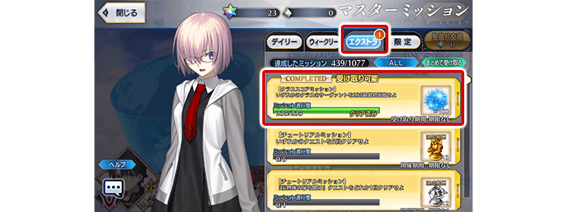 すべてのミッションをクリアすることで、聖晶石9個をゲットできます!