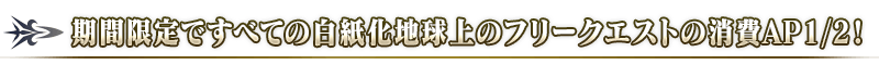 下記の期間中、白紙化地球上におけるフリークエストの消費APが1/2になります!(バトルにおいて撤退した場合でも、同様の消費量になります)