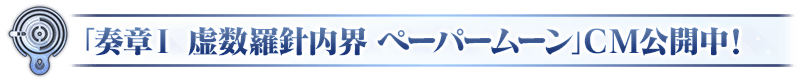 ※期間中、「奏章Ⅰ 虚数羅針内界 ペーパームーン」のCMムービーはマイルームのマテリアル(ストーリー)に登録され、期間終了後に削除されます。