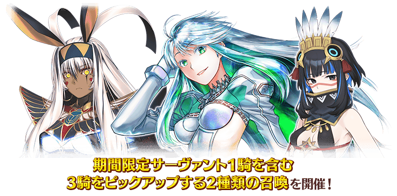 ※下記の期間限定サーヴァントは、ピックアップ対象となっている召喚からのみ排出されます。また、ピックアップ期間終了後、ストーリー召喚には追加されません。