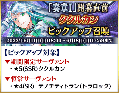 ※「★5(SSR)ククルカン」は、霊基再臨してもセイントグラフおよびバトルキャラなどが第2段階までしか変化しません。