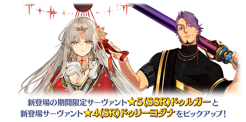 「奏章Ⅰ 虚数羅針内界 ペーパームーン」の開幕を記念して、期間限定サーヴァント「★5(SSR)ドゥルガー」と新登場サーヴァント「★4(SR)ドゥリーヨダナ」をピックアップ!