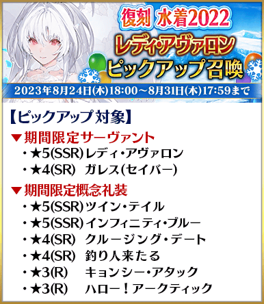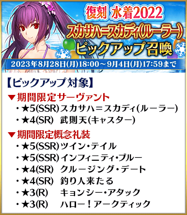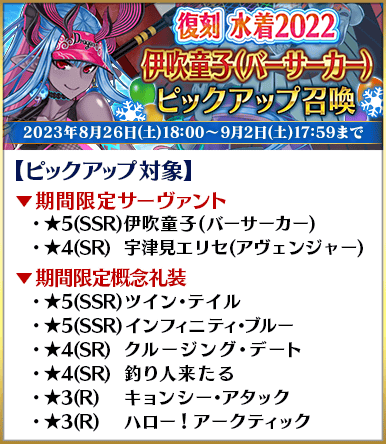◆「復刻 水着2022ピックアップ召喚」期間◆