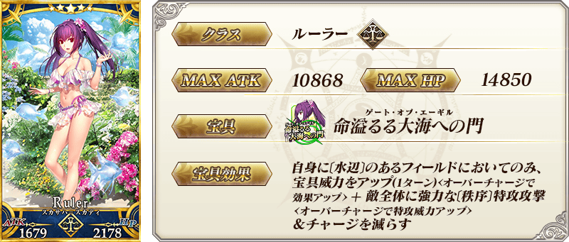 ※「★5(SSR)スカサハ=スカディ(ルーラー)」の霊衣開放権は、期間限定イベント「サーヴァント・サマー・フェスティバル2023!」のイベントアイテム交換期間のみ入手可能です。