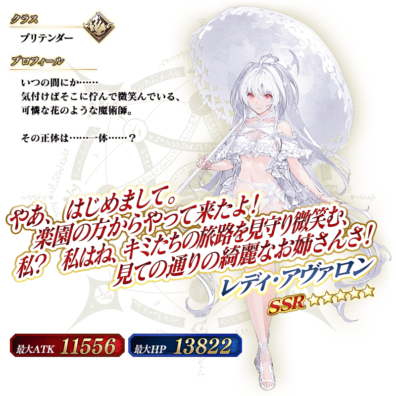 ※上記の「★5(SSR)レディ・アヴァロン」のイラストは霊基再臨第2段階のものです。