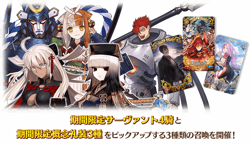 期間限定イベント「激走!川中島24時 ぐだぐだ超五稜郭 殺しのサインはM51」の開幕を記念して、期間限定サーヴァント4騎と、期間限定概念礼装3種をピックアップする3種類の召喚を開催!