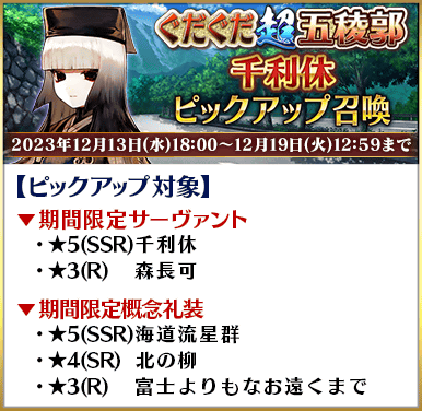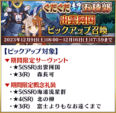 ◆「ぐだぐだ超五稜郭ピックアップ4召喚」期間◆