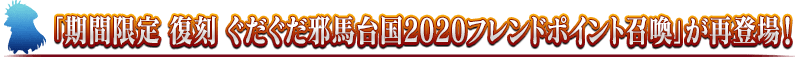本イベントの期間中、期間限定でフレンドポイント召喚が「期間限定 復刻 ぐだぐだ邪馬台国2020フレンドポイント召喚」になります。