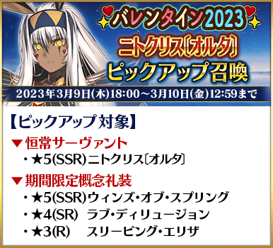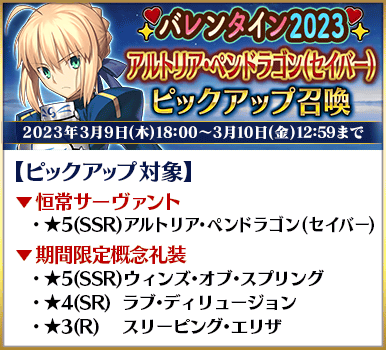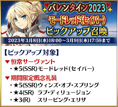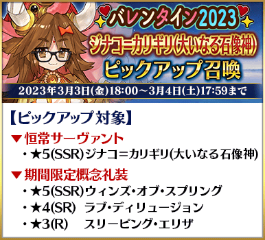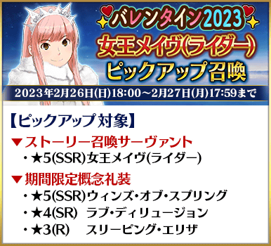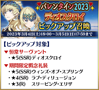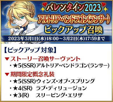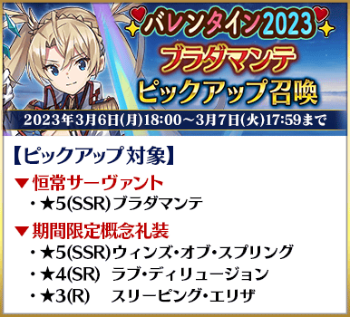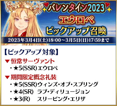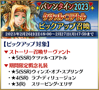 ◆「バレンタイン2023ピックアップ召喚」スケジュール◆