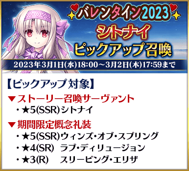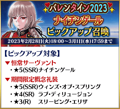 ◆「バレンタイン2023ピックアップ召喚」期間◆