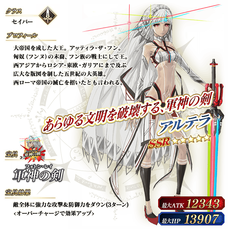 ※上記の「★5(SSR)アルテラ」のイラストは霊基再臨第2段階のものです。