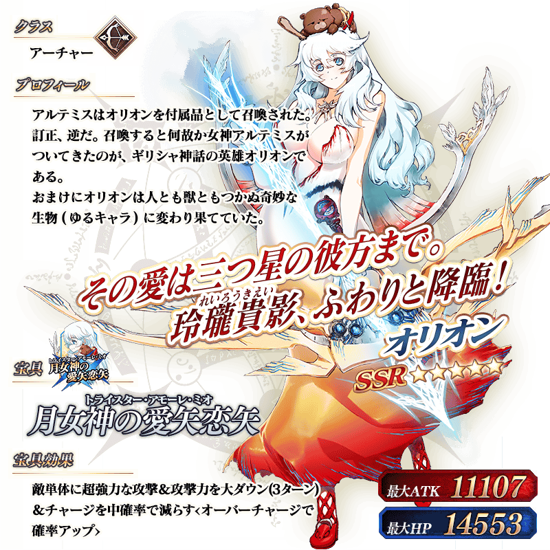 ※上記の「★5(SSR)オリオン」のイラストは霊基再臨第2段階のものです。