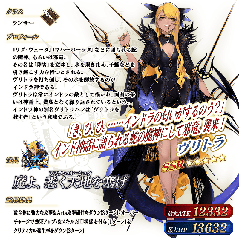 ※上記の「★5(SSR)ヴリトラ」のイラストは霊基再臨第2段階のものです。