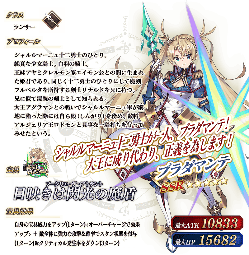 ※上記の「★5(SSR)ブラダマンテ」のイラストは霊基再臨第2段階のものです。