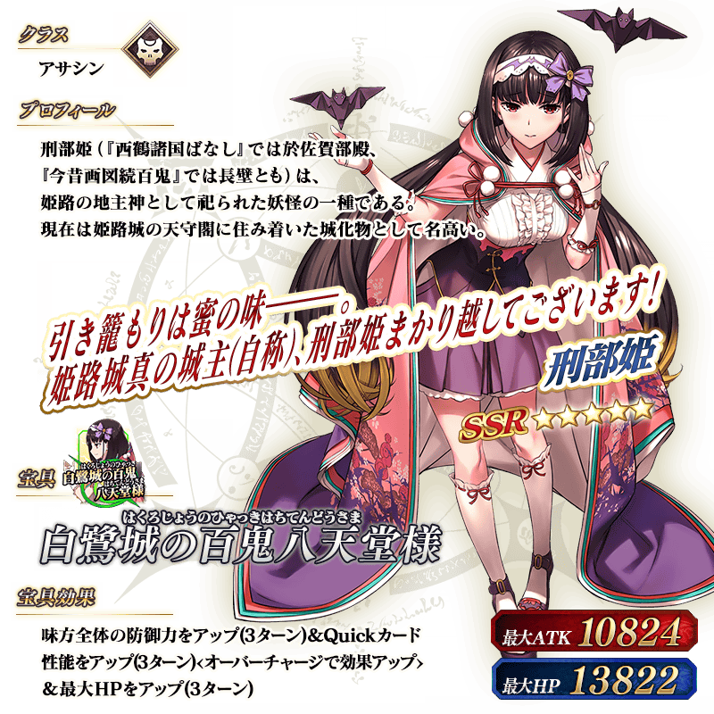 ※上記の「★5(SSR)刑部姫(アサシン)」のイラストは霊基再臨第2段階のものです。