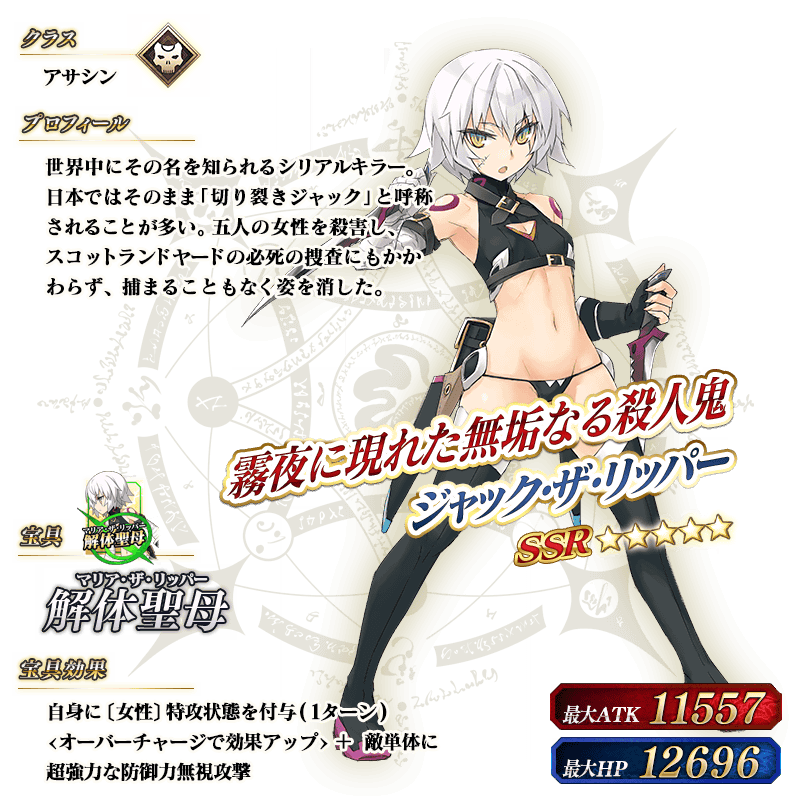 ※上記の「★5(SSR)ジャック・ザ・リッパー」のイラストは霊基再臨第2段階のものです。