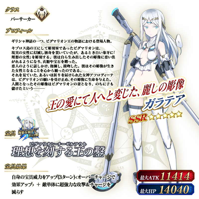 ※上記の「★5(SSR)ガラテア」のイラストは霊基再臨第2段階のものです。