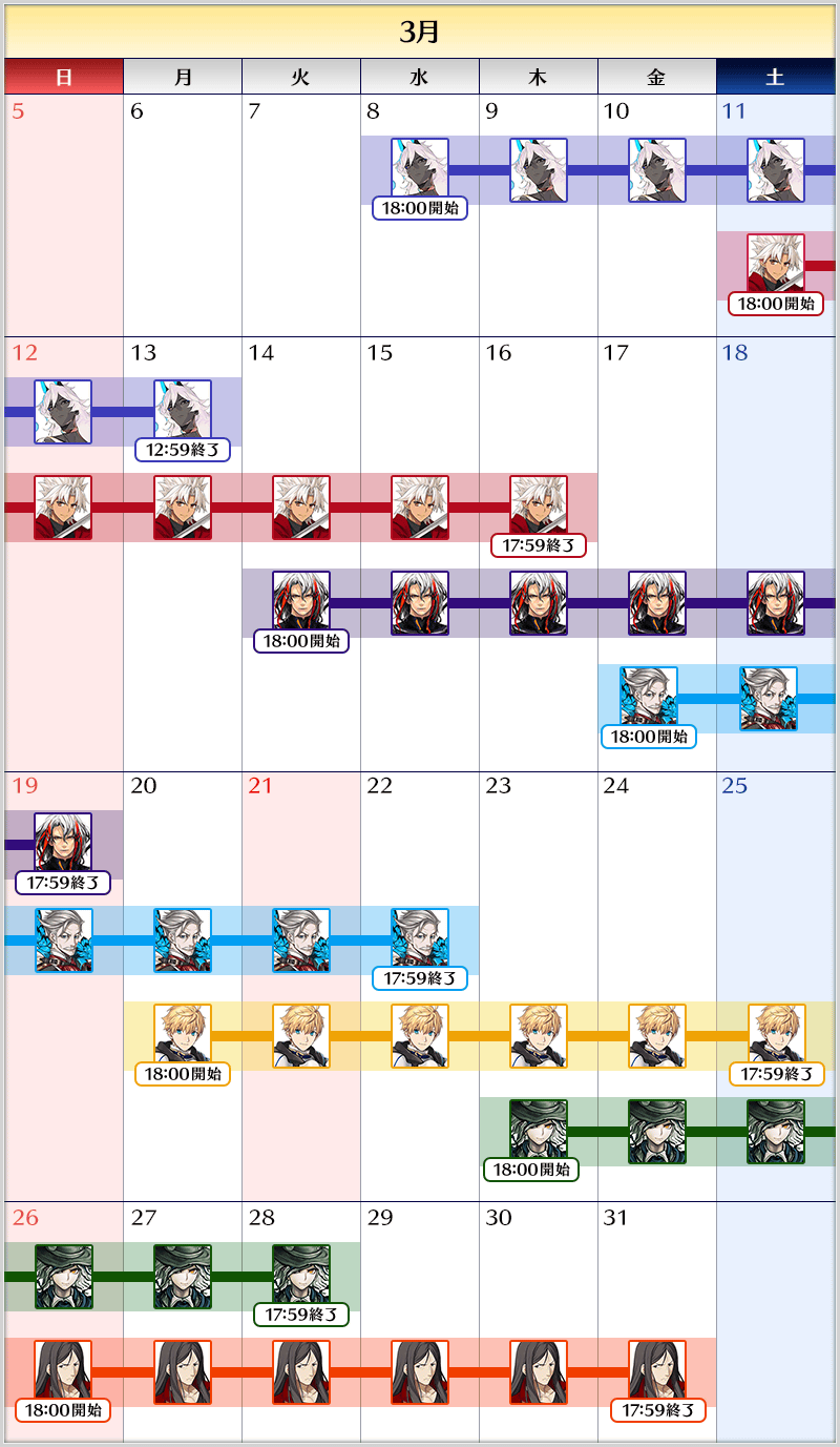◆「ホワイトデーメモリアルピックアップ召喚」スケジュール◆