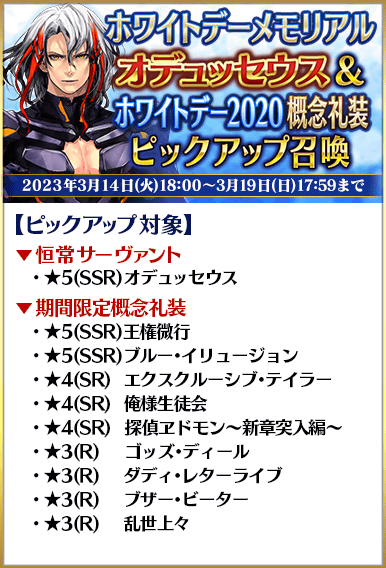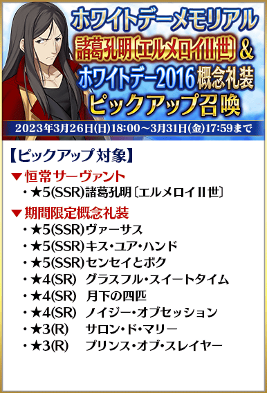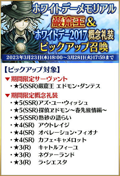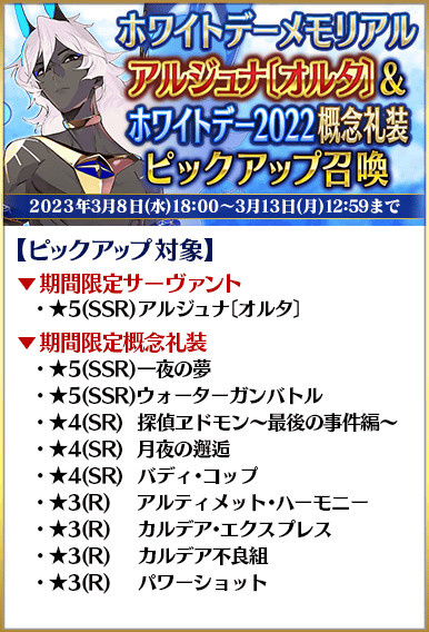 ◆「ホワイトデーメモリアルピックアップ召喚」期間◆