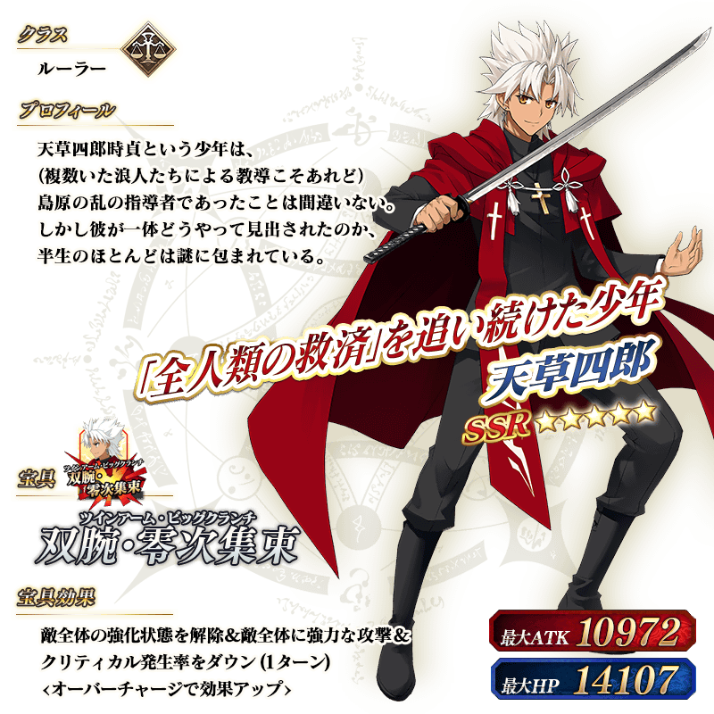 ※上記の「★5(SSR)天草四郎」のイラストは霊基再臨第2段階のものです。