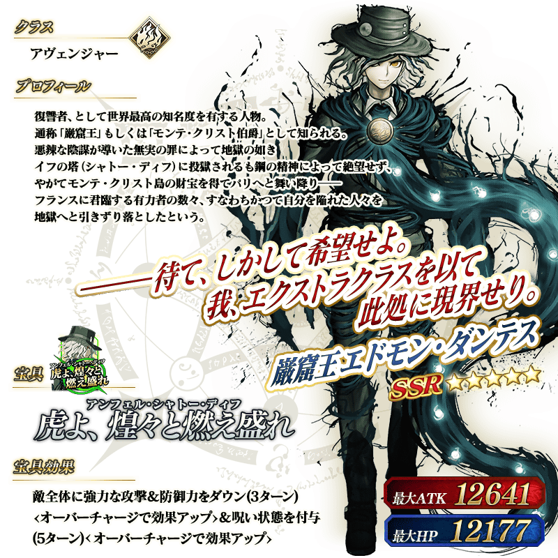 ※上記の「★5(SSR)巌窟王 エドモン・ダンテス」のイラストは霊基再臨第2段階のものです。