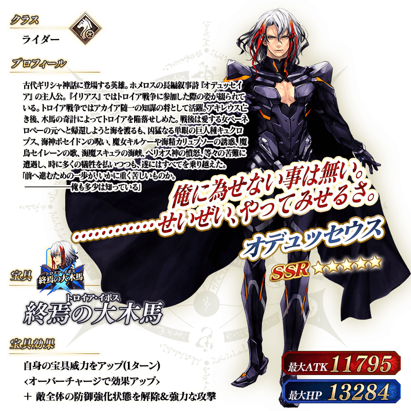 ※上記の「★5(SSR)オデュッセウス」のイラストは霊基再臨第2段階のものです。