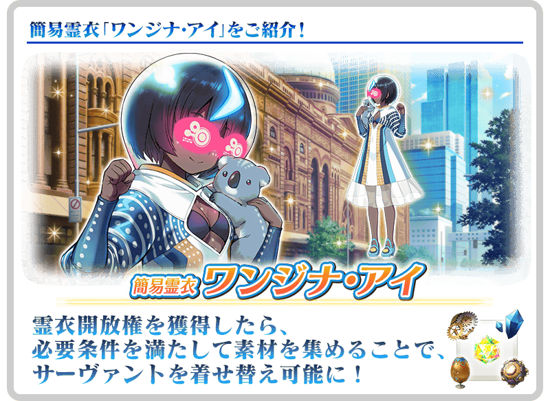※「★5(SSR)ワンジナ」を未所持の場合、霊衣開放権の入手はできますが、霊衣開放はおこなえませんのでご注意ください。