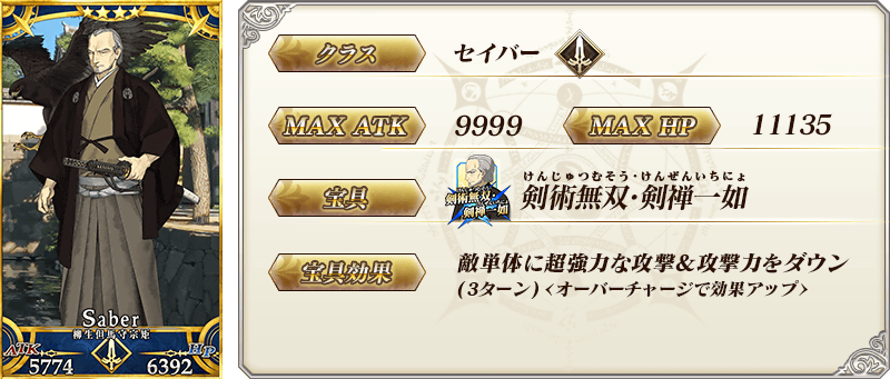 ※上記の「★4(SR)柳生但馬守宗矩」のセイントグラフは霊基再臨第2段階のものです。
