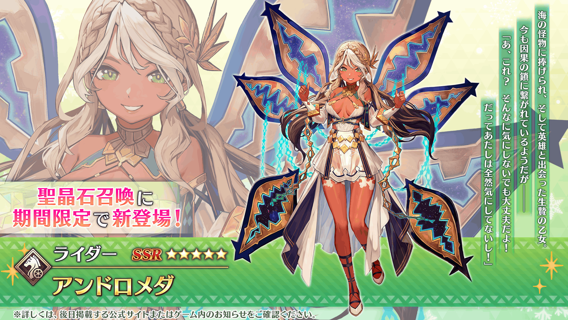 期間限定の聖晶石召喚に新たなサーヴァント「★5(SSR)アンドロメダ」が登場いたします。